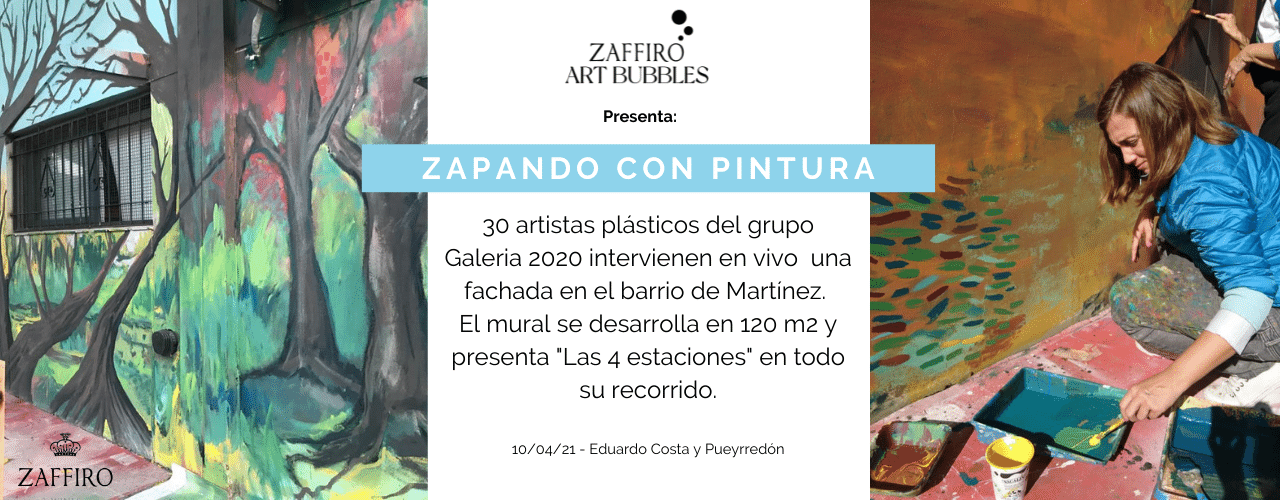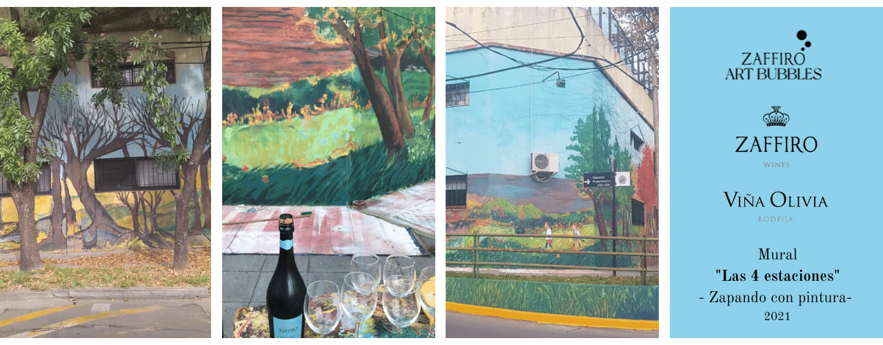 “Zapando con pintura”, es el nombre de la acción artística en la que participa la Bodega Viña Olivia a través de sus eventos ZAFFIRO ART BUBBLES. En esta ocasión junto al  grupo de artistas Galería2020 en la cual 30 de sus miembros intervinieron por completo la fachada de una emblemática esquina de la zona de Martínez. Esta acción, tiene como objetivo, la creación de un mural que embellecerá el barrio, devolviéndole a esta esquina todo su esplendor. El diseño de «Las 4 estaciones» recorre por completo los 120 m2 de frente de la propiedad.  Este grupo, con el artista Luis Belgrano a la cabeza convocó también a Laura Alercia, Bautista Belgrano, Mirta Benavente, Mercedes Campana, Juan Pablo Casas, Clarisa Cassiau, Ana Castro Feijoo, Claudio Curutchet, María E. Fernandez Varela, Mario Goldenberg, Carolina Holste, Miriam Lussneque, Agustina Massocco, Jorge Meijide, Patricia Minardi Otero, Ana Möller, Ana Paredes, Cristian Torres, Stella Reduello, Soledad Rivarola, Mónica Rodriguez Burghi y Pedro Roth. Además  artistas Invitados como Sandra Astuena, Juan Carlos Belgrano, Leila Bustamante, Silvia Carrasco, Gabriela Cassano, Charito Estrada, Claudia Lentino, Patricia Lumer, Fabia Notage y Belén Ríos. El mural se encuentra en la esquina de Eduardo Costa y Pueyrredón, frente al túnel del tren. Un nuevo espacio para los vecinos que verán renovadas las calles por donde suelen transitar.